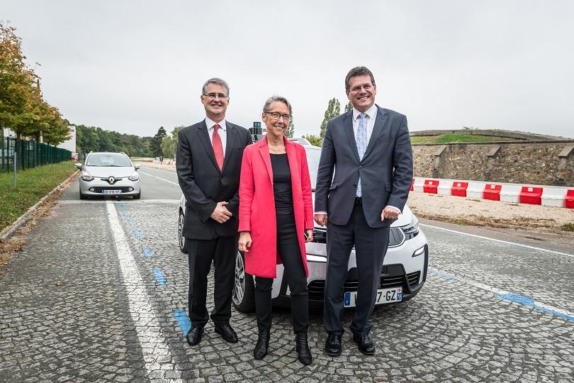 En visite sur le site d’expérimentation Vedecom à Versailles jeudi 5 octobre, Elisabeth Borne, ministre chargée des Transports et Marcos Šefcovic, vice-président de la Commission européenne et Commissaire en charge de l’Union de l’énergie, ont pu constater les avancées de la recherche en matière de nouvelles solutions de mobilité : recharge électrique sans contact des véhicules, mobilité autonome sans conducteur