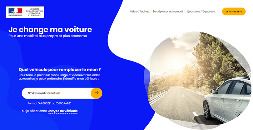 Afin d’accompagner au mieux les Français souhaitant changer de véhicule, le Ministère de la Transition Ecologique et Solidaire a lancé la plateforme : jechangemavoiture.gouv.fr. Il s’agit d’un site internet proposant différents outils pour réaliser au mieux son changement de véhicule, de façon à réaliser des économies et à limiter son empreinte environnementale.