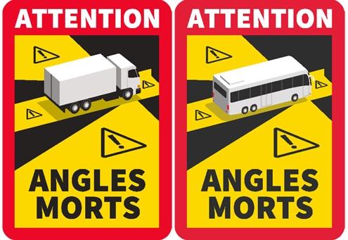 Le décret publié le 20/11/2020, relatif à la signalisation matérialisant les angles morts sur les véhicules, dont le poids total autorisé en charge excède 3,5 tonnes, met en place ce dispositif de signalisation et précise son emplacement : il doit être visible sur les côtés ainsi qu’à l'arrière du véhicule.