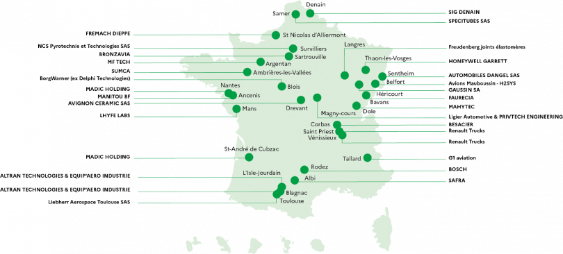 (2) Les subventions proviennent des fonds de modernisation automobile et aéronautique, du soutien aux projets industriels dans les territoires, du Programme Investissements d’Avenir dans le cadre du Comité d’orientation de la recherche pour l’automobile et les mobilités (CORAM).